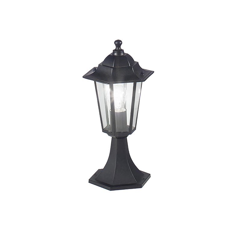 Paletto da terra per esterno (IP44) in stile classico con attacco E27 che consente di montare lampadina LED. Struttura in fusione di alluminio laccato nero o bianco, disponibile in due altezze, diffusore in vetro trasparente. Lampadina visibile: ilprodotto si pu? personalizzare con l'utilizzo di lampadine decorative. Disponibili giunti certificati IP68 per la realizzazione delle connessioni elettriche, sicure, durevoli e con barriera anticondens a.