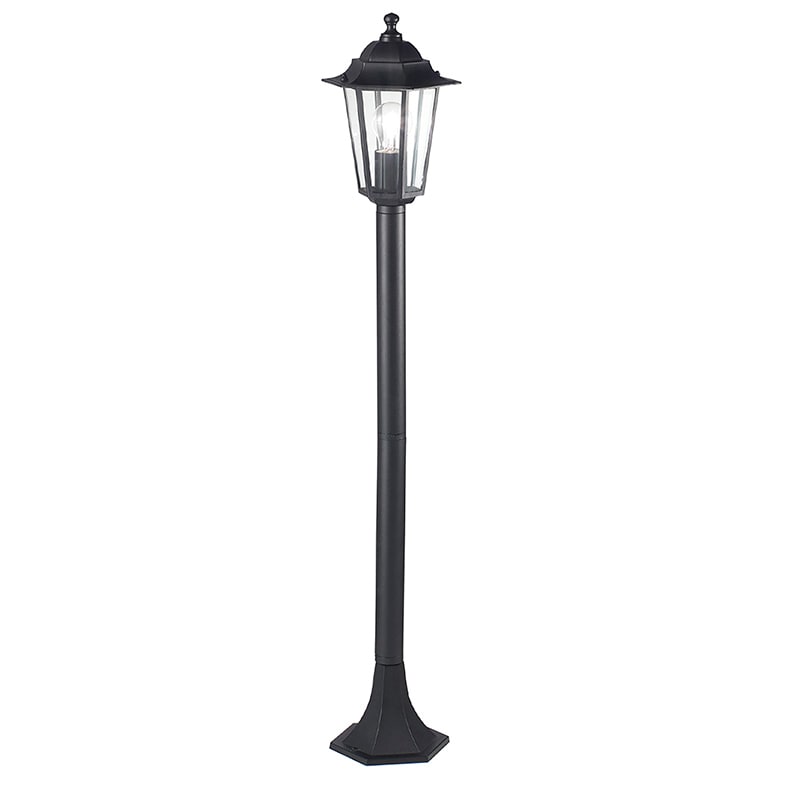 Paletto da terra per esterno (IP44) in stile classico con attacco E27 che consente di montare lampadina LED. Struttura in fusione di alluminio laccato nero o bianco, disponibile in due altezze, diffusore in vetro trasparente. Lampadina visibile: ilprodotto si pu? personalizzare con l'utilizzo di lampadine decorative. Disponibili giunti certificati IP68 per la realizzazione delle connessioni elettriche, sicure, durevoli e con barriera anticondens a.