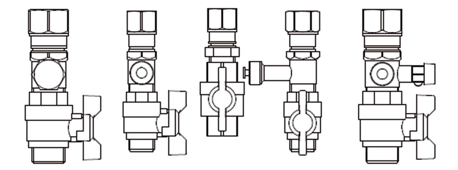 Set raccordi/valvole per collegamento idraulico. Include i raccordi di collegamento e le valvole di intercettazione per i circuiti di riscaldamento, ACS ed alimentazione del gas