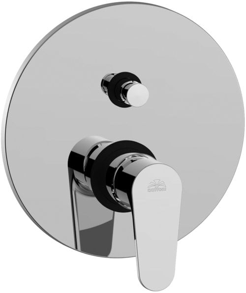 Miscelatore incasso doccia (2 uscite) con deviatore a pulsante, completo di: • piastra in metallo Ø200mm • attacchi calda/fredda e superiore 1/2”G - attacco inferiore 3/4”G. Finitura cromo