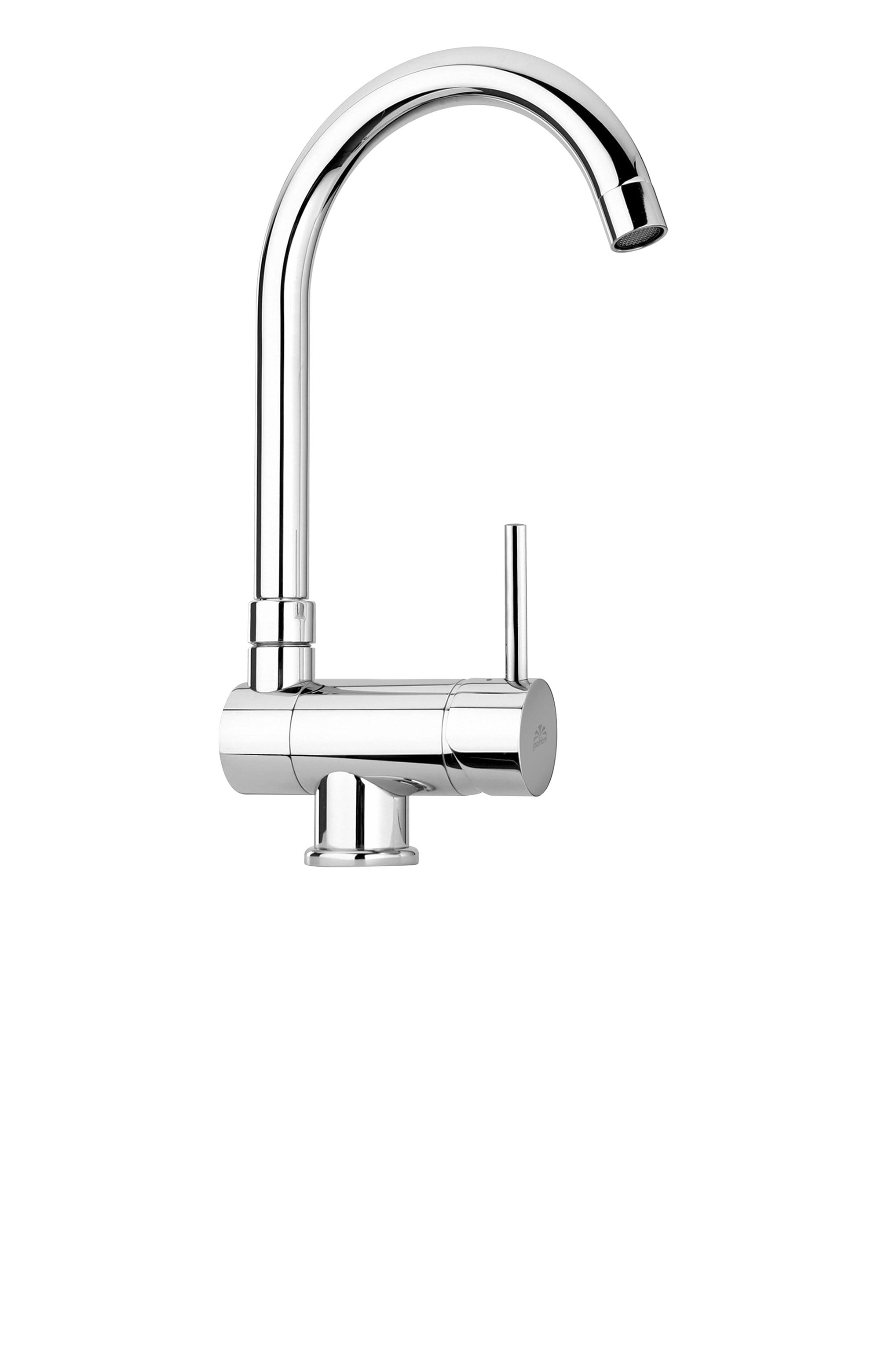Miscelatore lavello monoforo con canna orientabile reclinabile, altezza minima per apertura finestra 76 mm, completo di: • aeratore M22x1 • set 2 flessibili inox 3/8”G. Finitura cromo
