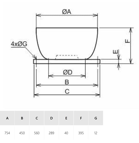 Dimensione della base, interna, quadrata: