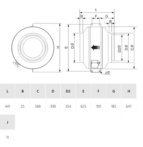 Portata di scarico - 3386 m³/h