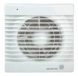 Ventilatori elicoidali extrapiatti,con serranda anti-ritorno incorporata; portata di circa 200 m3/h, spia luminosa di funzionamento e motore 230V 50Hz, Classe II, IP44, con protezione termica per temperatura di esercizio fino a 40°C. Con Spia luminosa e Serranda antiritorno