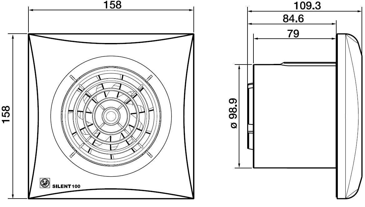 Ventilatori elicoidali con basso livello sonoro con portata di circa 85 m3/h. Con serranda anti-ritorno incorporata, spia luminosa difunzionamento, motore 230V-50Hz con cuscinetti lubrificati a vita e montati nel silent-blocks, IP45, Classe II, con protezione termica per temperatura di esercizio fino a 40°C.