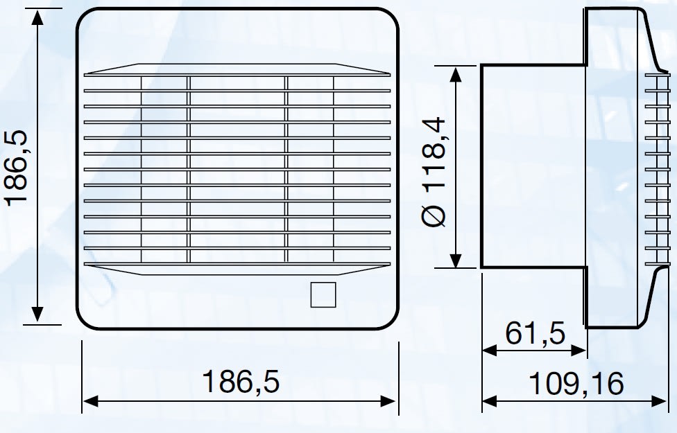 Ventilatori elicoidali con portata di circa 180 m3/h con motore 230V 50Hz, IP44, Classe II, con protezione termica per temperatura di esercizio fino a 40°C.