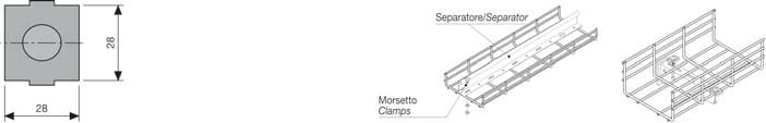 Morsetto di fissaggio della passerella alle mensole o del separatore GKS 34. In acciaio zincato a caldo per immersione dopo lavorazione. Completo di vite zincata M6 x 20. Per il fissaggio della passerella a filo sulle mensole o per il fissaggio del separetore alla passerella.