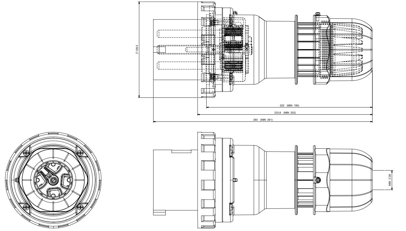125A 3P+T 11h 440-460V 60Hz Morsetti a mantello