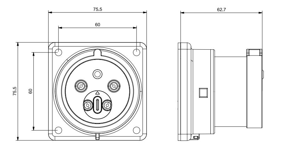 16A 3P+N+T 6h 346-415V 60Hz - 50Hz 75X75MM Morsetti a vite