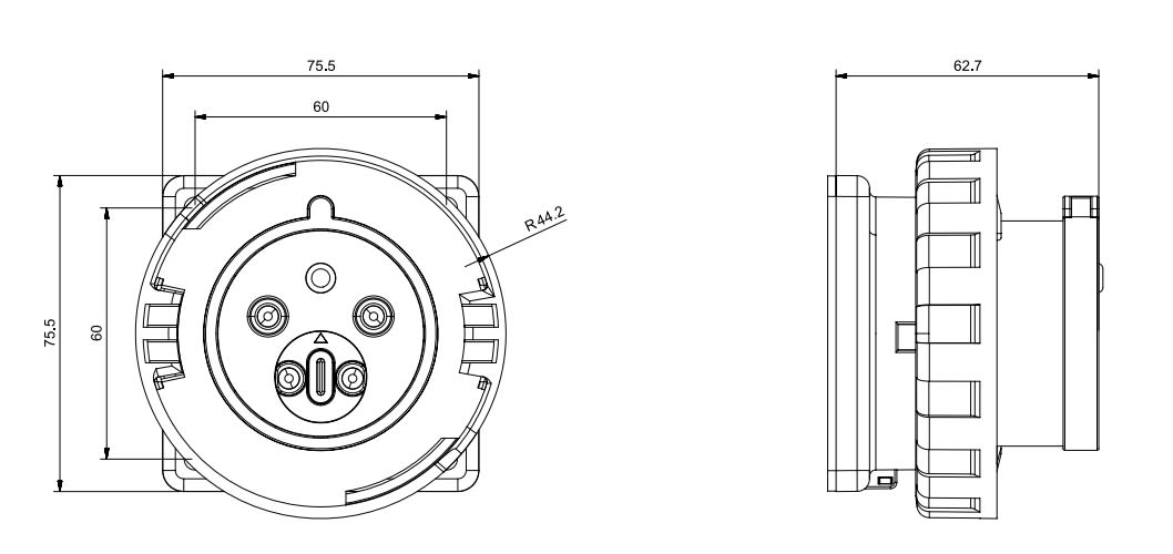 16A 3P+N+T 6h 346-415V 60Hz - 50Hz 75X75MM Morsetti a vite