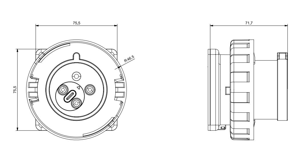 32A 3P+T 6h 380-415V 60Hz - 50Hz 75X75MM Morsetti a vite