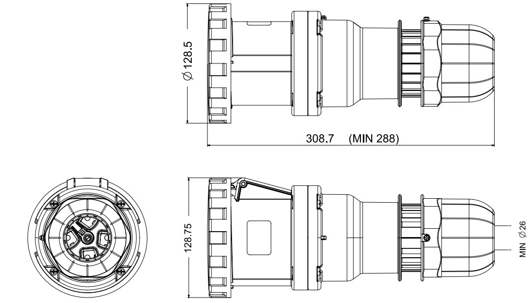 125A 3P+T 7h 480-500V 50Hz - 60Hz Morsetti a mantello