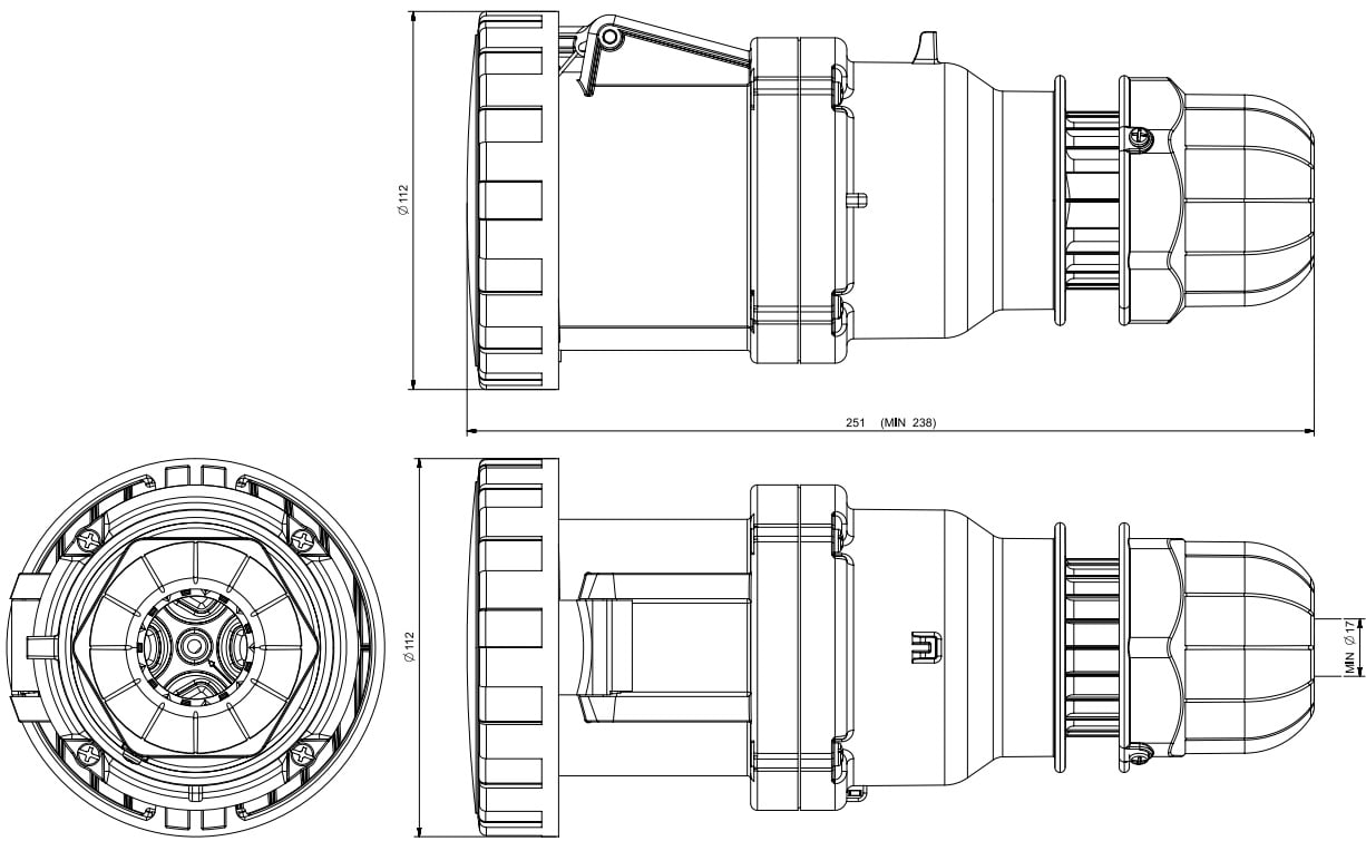 63A 3P+T 7h 480-500V 50Hz - 60Hz Morsetti a mantello
