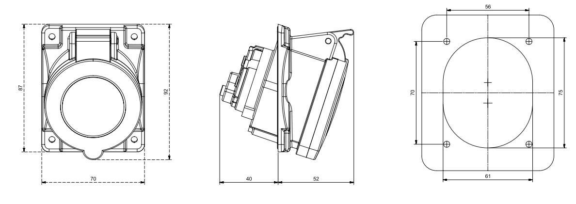 16A 3P+N+T 6h 346-415V 60Hz - 50Hz 70X87MM Morsetti a vite