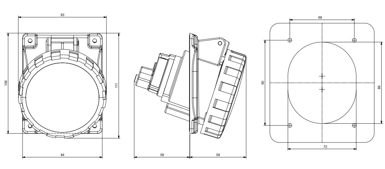 32A 2P+T 9h 380-415V 50Hz - 60Hz 84X106MM Morsetti a vite