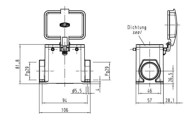 CUSTODIA FISSA+COPERCHIO 32P PANNELLO 2 USCITE PG29