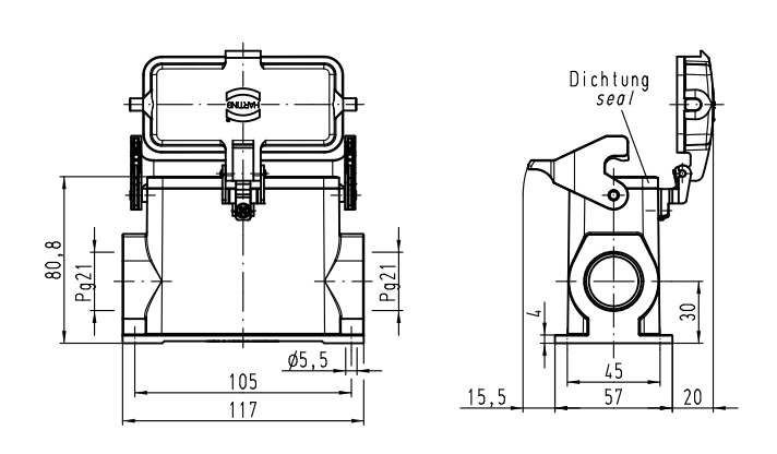 CUSTODIA FISSA 1 LEVA 16P PANNELLO 2 USCITE PG21
