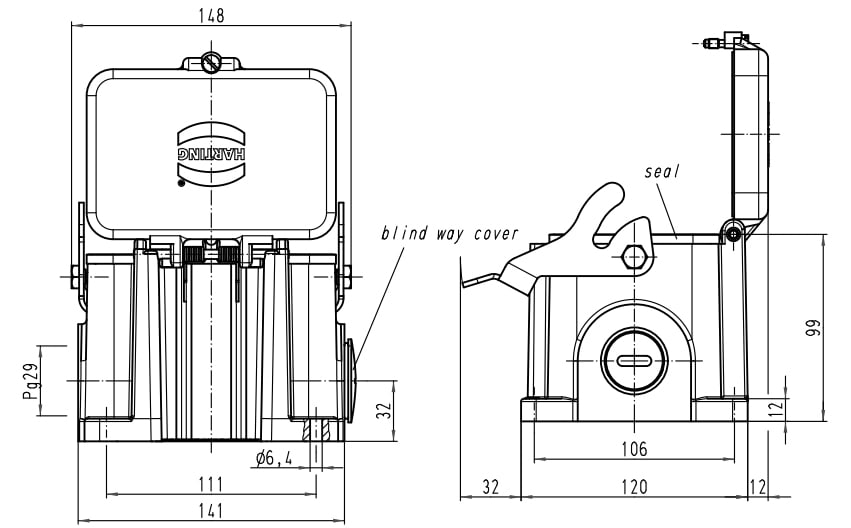 CUSTODIA FISSA+COPERCHIO 1 LEVA 48P PANNELLO 2 USCITE PG29