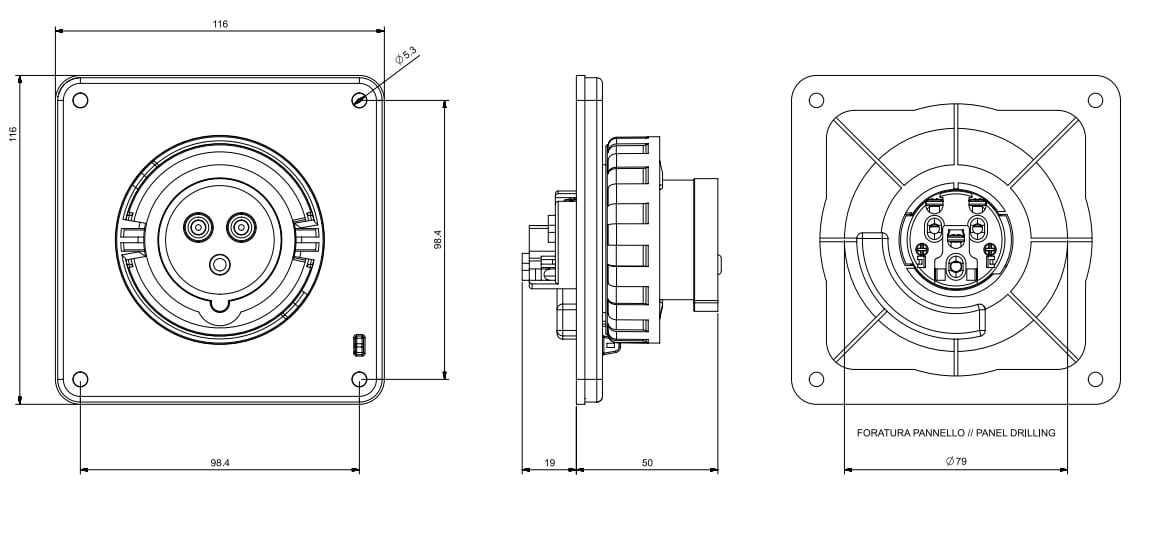 20A 2P 3W 4h 125V 120X120MM Morsetti a vite