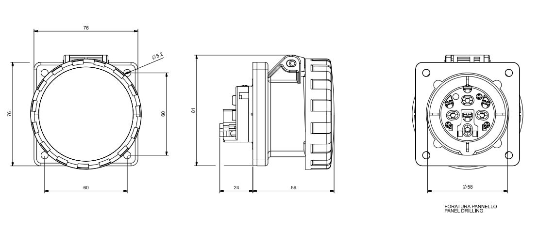 20A 3P 4W 5h 3Ø600V 75X75MM Morsetti a vite