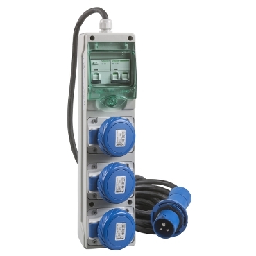 L'involucro Kaedra in versione mobile MC resistente alle intemperie per spina e presa è dedicato al progetto in loco ed è dotato di un cavo H07RN-F di lunghezza 5 m. Consente il montaggio di tre prese di alimentazione 2P+T 16A e di una spina 2P+T 16A. Consente il montaggio di un interruttore di circuito miniaturizzato a curva C 2P 16A con capacità di interruzione di 6 kA, un dispositivo di corrente residua (RCD) di classe AC 2P 25A con sensibilità di dispersione a terra di 30 mA. La tensione nominale è 230 V AC. Il grado di protezione agli urti meccanici è IP65 e IK09. La resistenza al fuoco è 650°C. Il colore dell'involucro è grigio chiaro (RAL 7035). Questo involucro è conforme alla norma IEC/EN 60695-2-11.