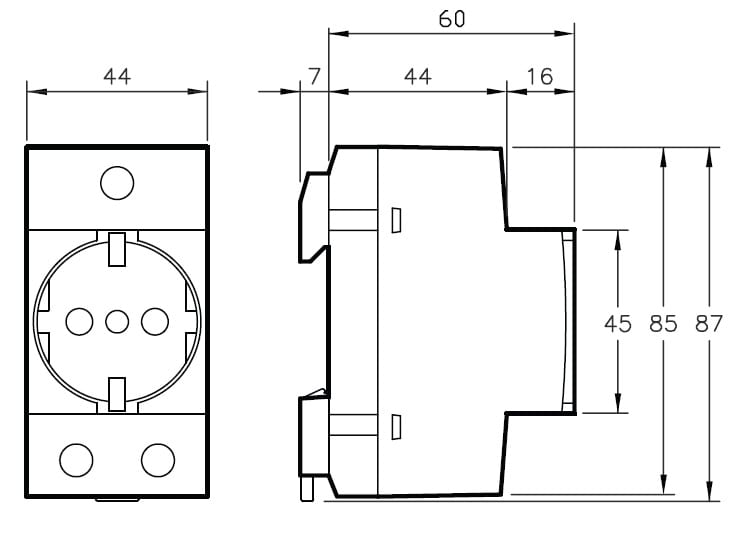 Questo prodotto Acti9 iPC è una presa di alimentazione modulare che consente il collegamento del dispositivo a bassa tensione alla rete elettrica. È una presa di alimentazione 2P+E standard da 16A con coperchio di protezione sui poli. Il colore della presa è bianco. La coppia di serraggio del collegamento è di 1,2 N.m per il tipo di cacciavite PZ2. Il collegamento consente cavi rigidi in rame da 10 mm². Il collegamento consente l'uso di cavi in rame flessibili o con bussole da 6 mm². Il peso è 98 g. Larghezza in passi da 9 mm è 5. Le dimensioni totali sono (H) 44 mm x (L) 87 mm x (P) 60 mm. Il grado di protezione è IP20 sui morsetti e IP40 all'interno dell'armadio. È conforme alla norma IEC 60884 e alla norma IMQ secondo la norma IEC 2350.
