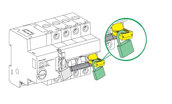 Questo prodotto Acti9 è un dispositivo lucchettabile utilizzato per chiudere con lucchetto in posizione aperta o chiusa. È dedicato a Acti9 iC60, iID, iDPN Vigi, iSW-NA. Il diametro del lucchetto è da 3 mm a 6 mm. Il diametro massimo sigillabile è di 1,2mm. Il blocco in posizione ON non impedisce lo scatto dell'interruttore in caso di guasti. Questo accessorio con lucchetto giallo è montato sulla parte anteriore del prodotto da proteggere. Questo dispositivo di montaggio è adatto per iC60, iC60 + Vigi, iID, iDPN Vigi, iSW-NA, iSW Acti9. Questo prodotto è adatto alla disconnessione conforme allo standard IEC/EN 60947-2.