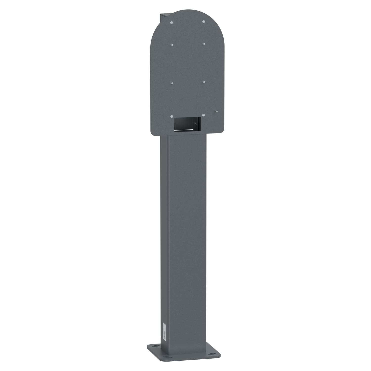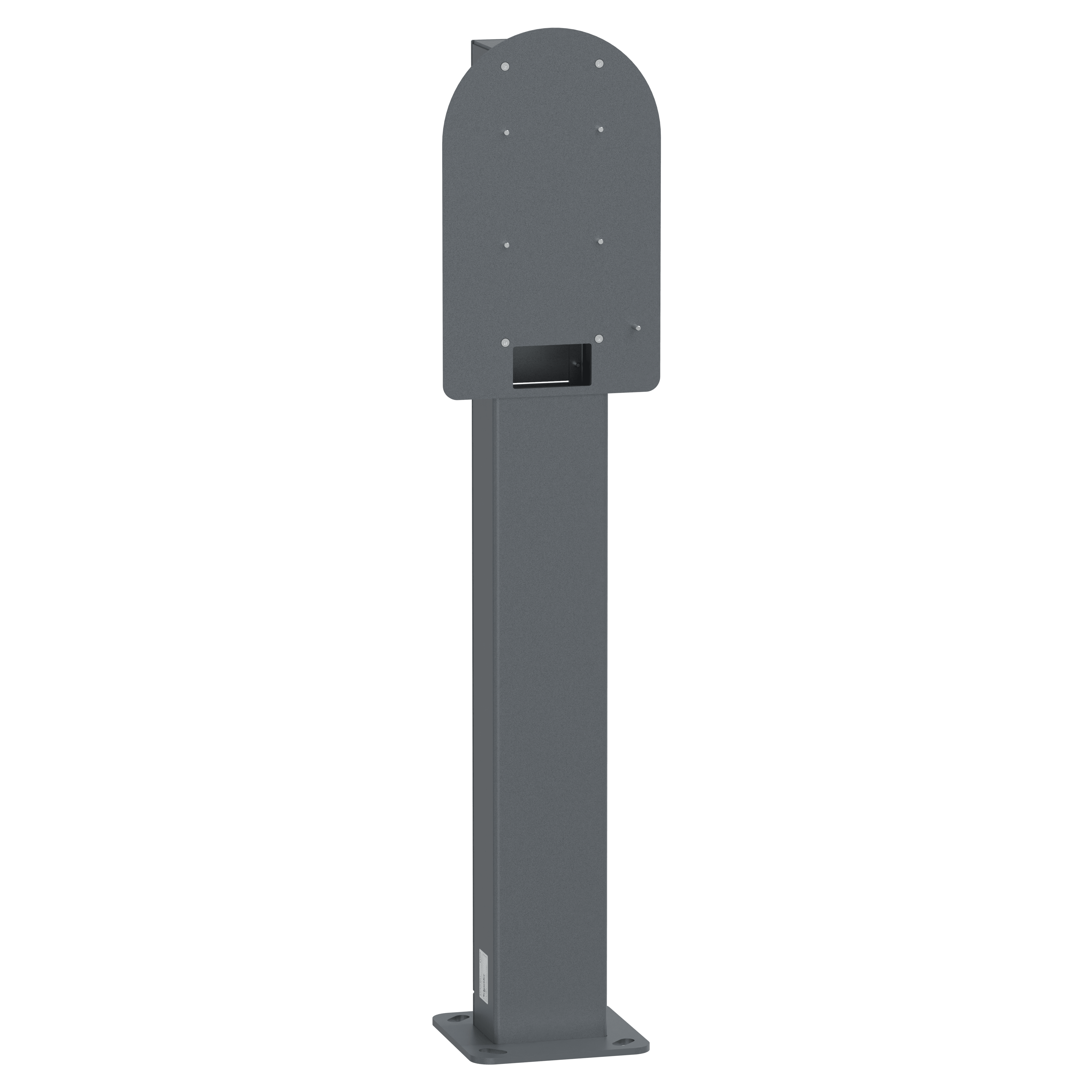 Questo accessorio di montaggio di Schneider Charge Pro è un sostegno per il montaggio su piedistallo, installato sul pavimento. Consente di supportare 1 stazione di ricarica Schneider Charge Pro. Colore grigio scuro (RAL 7016). Il materiale del piedistallo è Alu 5754 con pretrattamento al fosfato di zinco. Dimensioni: (A) 1213 mm x (L) 262 mm x (P) 229 mm. Il peso del prodotto è di 9 kg.