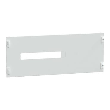 Piastra frontale PrismaSeT G per Transfer Pact 63A, 3P/4P. Il tipo di piastra frontale è la piastra pretranciata. Il numero di dispositivi per fila orizzontale è uno, con 6 moduli verticali. Facente parte di una piastra frontale montata su PrismaSeT G. per armadio a pavimento - larghezza 850 mm e profondità 200 mm. Piastra frontale in lamiera di acciaio trattato con rivestimento in polvere epossidica. finitura superficiale opaca/testurizzata con bianco (RAL 9003). La temperatura ambiente di funzionamentoè compresa tra 25°C e 55°C, in conformità con l’IEC 61439-1/ Β 61439-2.