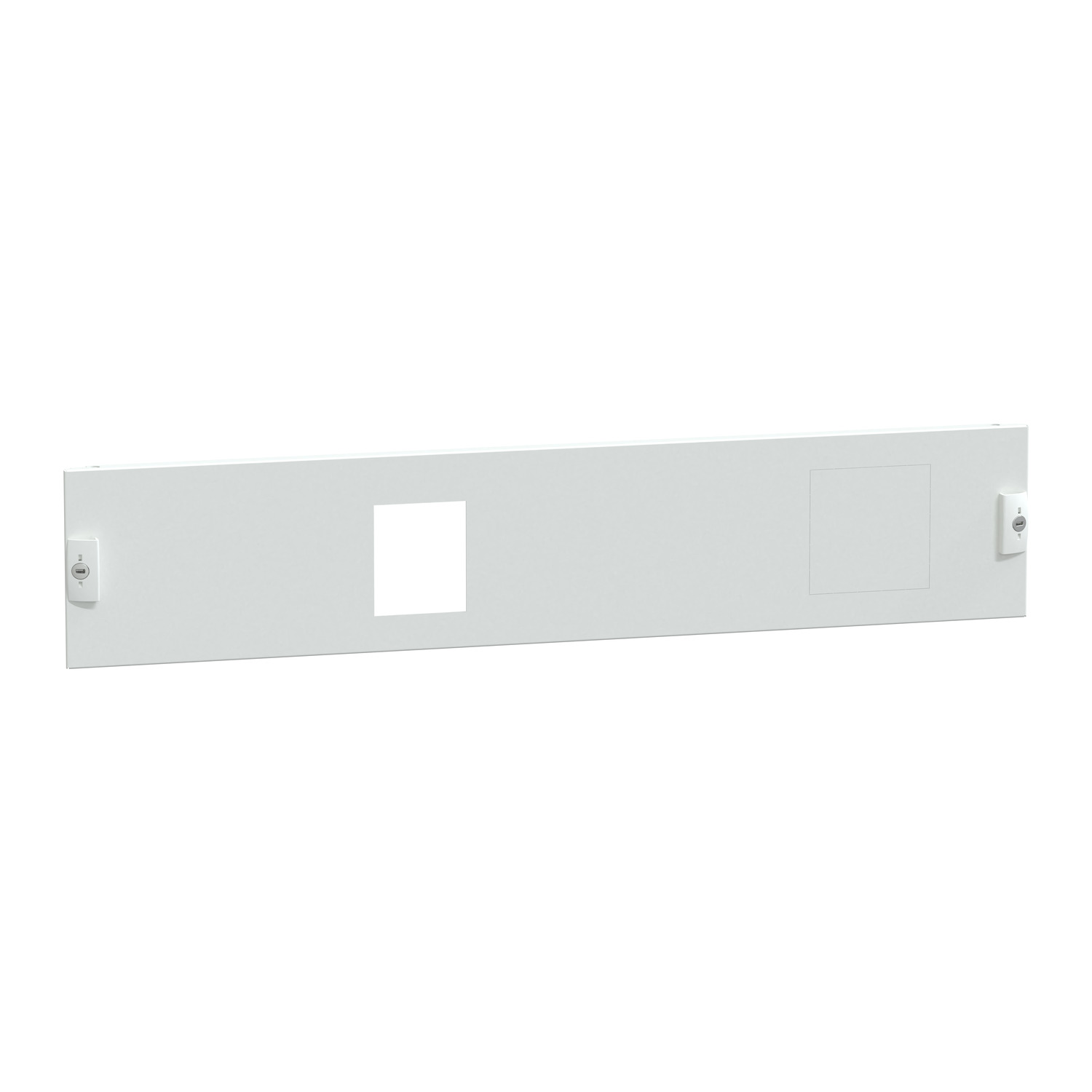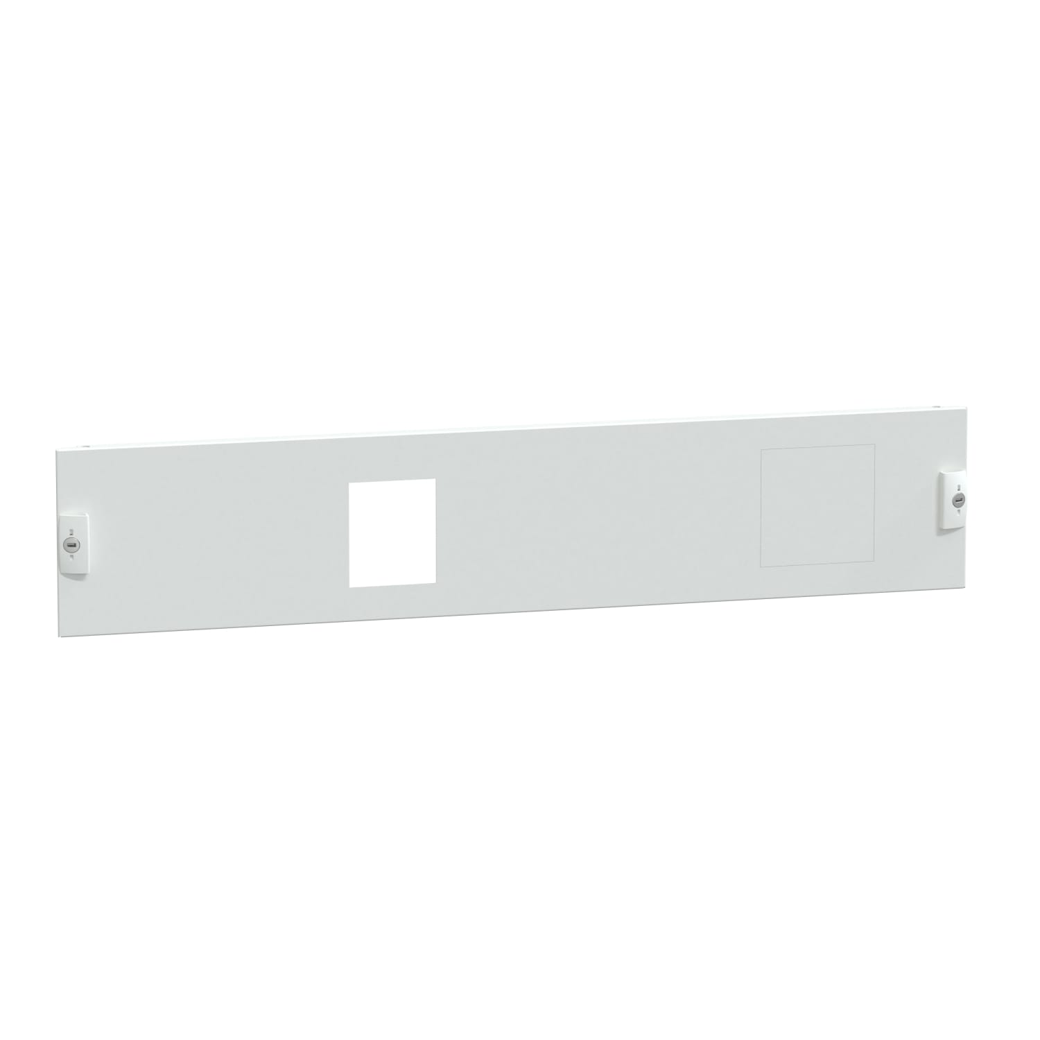 Piastra frontale pretranciata per la protezione dei dispositivi di controllo adatta per armadi a parete e a pavimento PanelSeT G Compatibilità con NSX 160 , 3P o 4P Supporta vari meccanismi di controllo come la manovra rotativa fissa, garantendo flessibilità in installazione e funzionamento. È progettato per l'installazione orizzontale, per cui è ideale per un'ampia gamma di configurazioni elettriche. È compatibile con armadi da 850 mm di larghezza e 3 moduli verticali L'altezza e la larghezza nominali sono rispettivamente di 150 mm e 800 mm. È fatto d'acciaio. Il colore è Bianco Β 9003 e Conforme agli standard Β e REACh. Trattamento di elettroforesi e lastra di acciaio con polvere epossidica poliestere polimerizzata a caldo.
