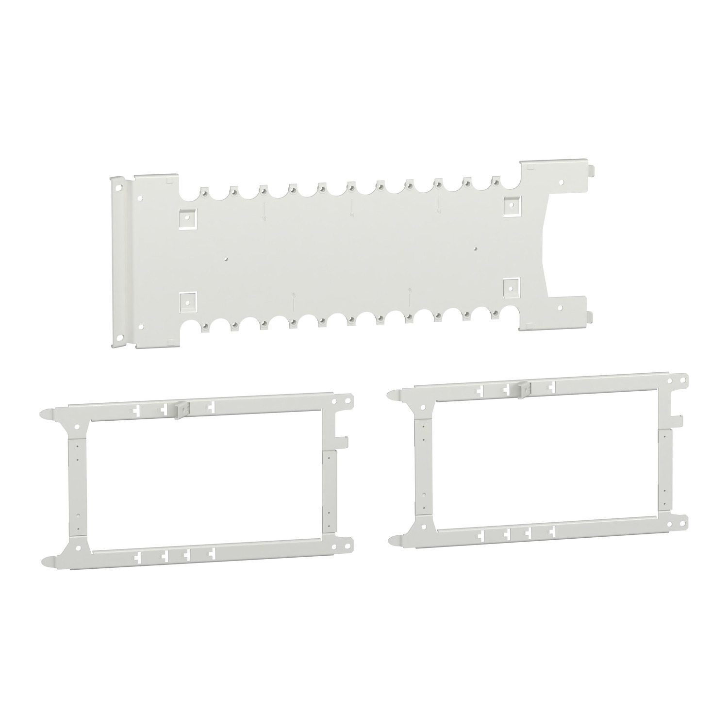 La piastra di montaggio è adatta per le unità funzionali PrismaSeT P Compatibilità con ComPact 3-4 dispositivi NS250. Sono progettati per l'installazione verticale e sono ideali per un'ampia gamma di configurazioni elettriche. È compatibile con armadi dilarghezza 650 mm. È fatto d'acciaio. Il colore è Bianco Β 9003 e Conforme agli standard Β e REACh. Trattamento di elettroforesi e lastra di acciaio con polvere epossidica poliestere polimerizzata a caldo.