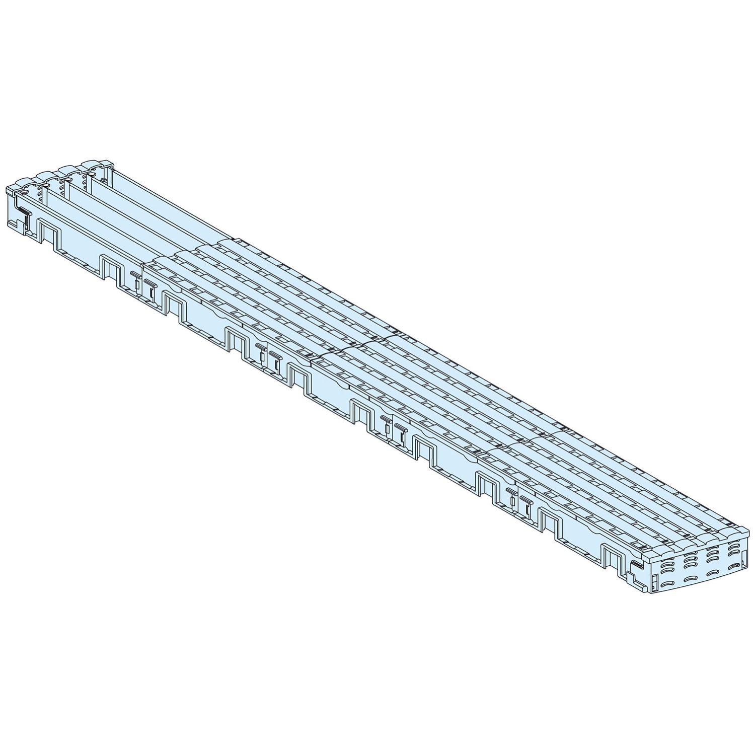 Sbarre di distribuzione progettate per l'uso in impianti di distribuzione elettrica e compatibili con PrismaSeT P e armadi per PrismaSeT G. Sbarra isolata a 3 poli di Linergy BW. La sbarra ha una corrente operativa nominale di 125 A e una corrente nominale di breve durata ammissibile di 8,5 kA. Il busbar ha anche una corrente nominale di picco ammissibile di 20 kA. La barra collettrice è lunga 750 mm. Viene collegato mediante fori filettati M6 con un passo di collegamento di 25 mm.