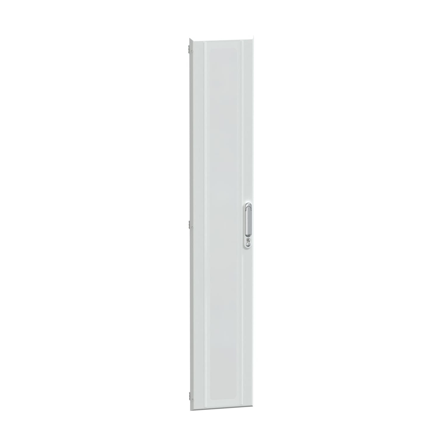 Porta trasparente per condotto a PrismaSeT G. Il prodotto deve essere montato sulla parte anteriore dell'armadio La larghezza nominale è 300 mm L'altezza nominale è 1880 mm. Lo sportello è realizzato in lamiera d’acciaio (RAL 9003) e ha un grado di protezione IP30/4X. Cerniere sinistra o destra (angolo di apertura 130°). Lo sportello ha 1 serrature con serratura a chiave (chiave 405). Trattamento dell’elettroforesi e polvere epossidica di poliestere polimerizzata a caldo.