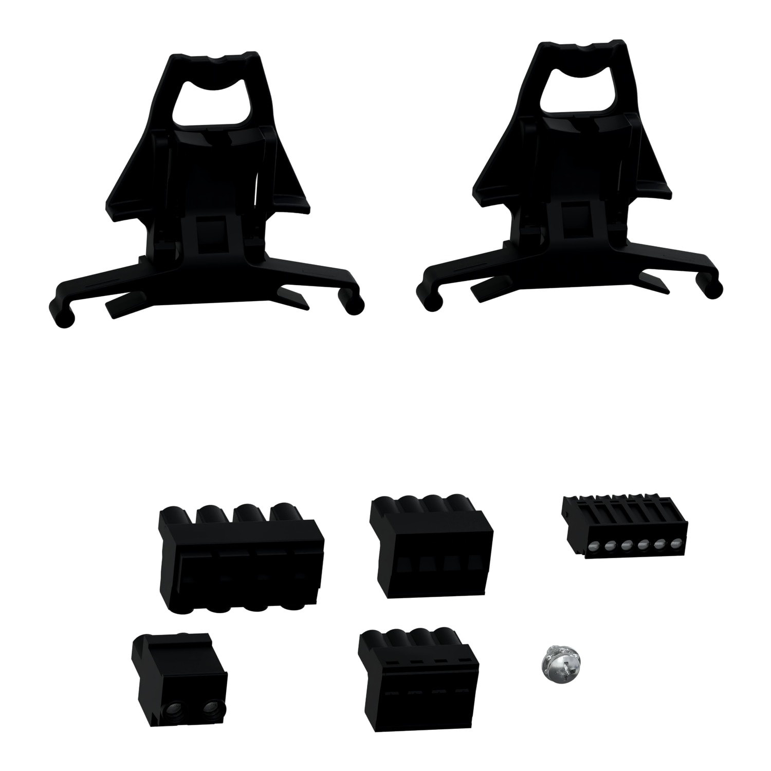 Kit hardware per misuratore PowerLogic Serie PM53xx. Il kit include 4 connettori terminali di ingresso (comunicazione, alimentazione e viti TA) e l'hardware necessario per il montaggio su pannello.