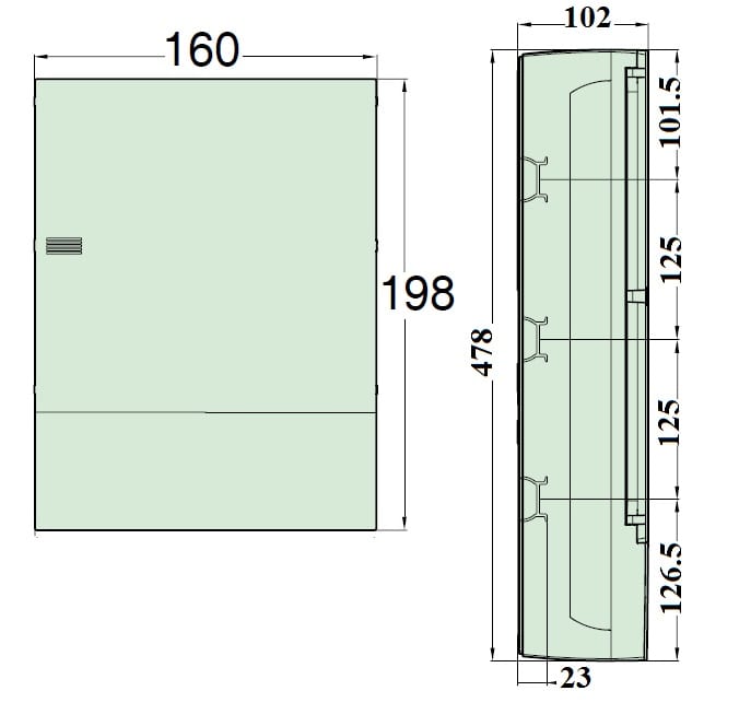 Resi9 MP è un involucro modulare a montaggio superficiale. Questo involucro in plastica è composto da 3 file di 12 moduli da 18 mm. Può ospitare tutti i tipi di interruttori modulari. Il grado di protezione è IP40. È dotato di una porta bianca liscia. Ilcolore del lato anteriore è bianco (RAL 9003). È destinata a installazioni nuove o per ristrutturazione di edifici residenziali. È dotato di una guida asimmetrica da 35 mm. Non sono presenti morsettiere. La corrente nominale In è fino a 63 A. È conforme alle norme IEC 529, IEC 60439-3, IEC 60670-24. Le dimensioni totali sono (W) 268 mm x (H) 478 mm x (D) 102 mm. L'involucro è realizzato in tecnoplastica (parte posteriore e parte anteriore). La porta è realizzata in tecnoplastica. La resistenza della plastica alle fiamme e al calore anomalo è 650°C per la porta, la parte posteriore e la parte anteriore. Il grado di protezione urti meccanici è IK07. La temperatura di funzionamento è compresa tra -25 °C e +60 °C.
