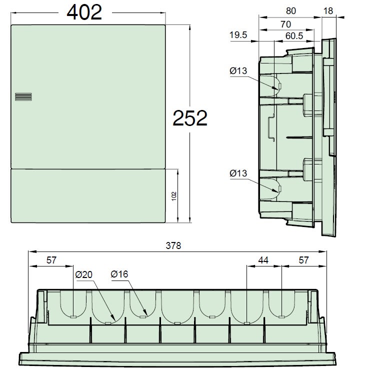 Il prodotto Resi9 MP è composto da un lato anteriore liscio e da una porta bianca liscia. È dedicato a 1 fila di 18 moduli da 18 mm. Può ospitare tutti i tipi di commutatori modulari. La capacità totale nei moduli da 18 mm è 18. Le dimensioni sono (W) 402 mm x (D) 252 mm. È destinata a installazioni nuove o per ristrutturazione di edifici residenziali. Il materiale è una tecnoplastica autoestinguente appositamente sviluppata. La resistenza al fuoco e al calore anomalo è di massimo 650°C per la parte anteriore e la porta. Il grado di protezione urti meccanici è IK07. La temperatura di funzionamento va da -25°C a +60°C.