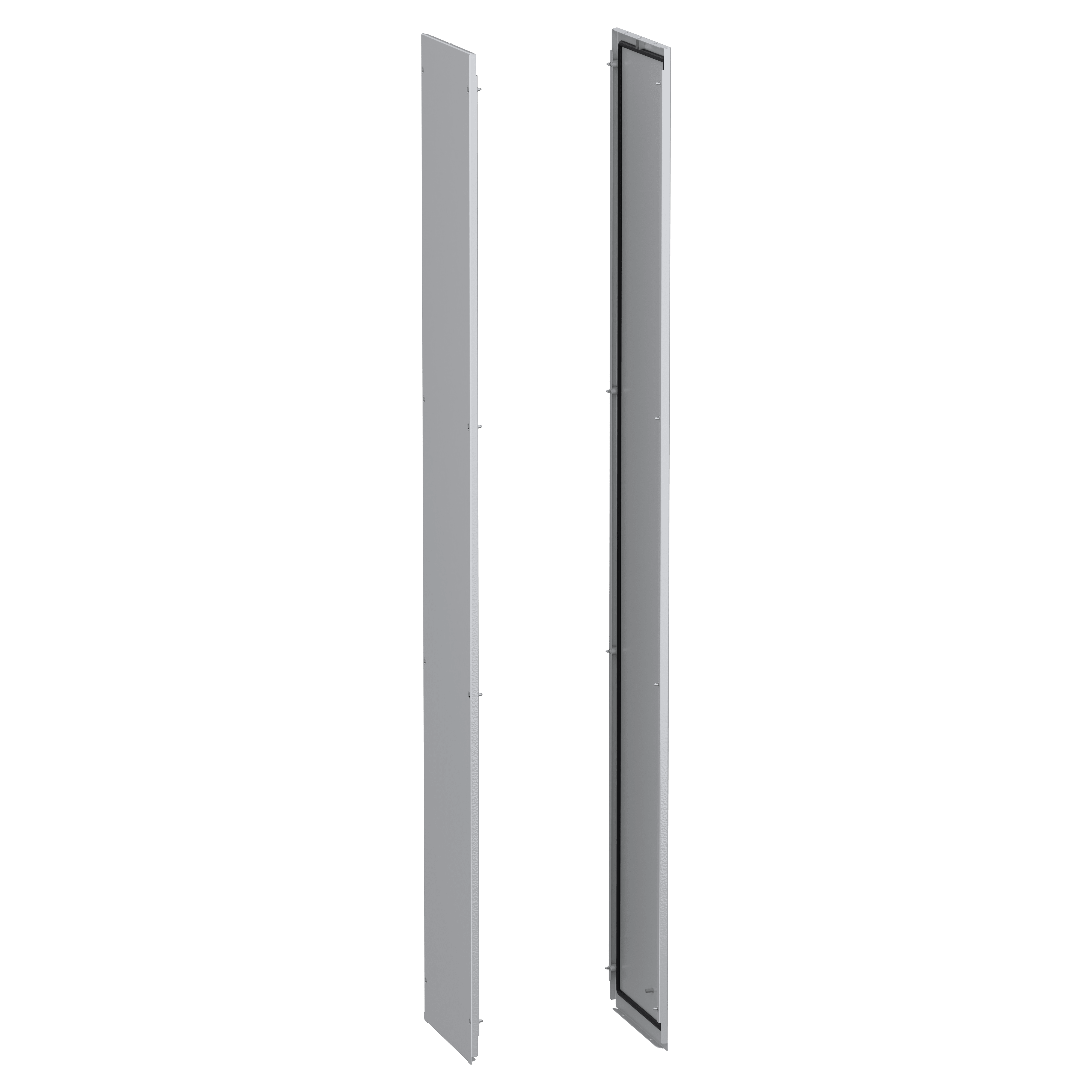 Questi due pannelli laterali in acciaio sono progettati appositamente per assemblare un armadio elettrico modulare in acciaio decarbonizzato, a pavimento, PanelSeT SFN per varie applicazioni. Hanno rispettivamente un'altezza e una profondità nominale di 2000 mm e 400 mm. I pannelli sono in lamiera d'acciaio. La finitura in polvere epossi-poliestere fornisce un aspetto uniforme. È di colore grigio (RAL 7035).
