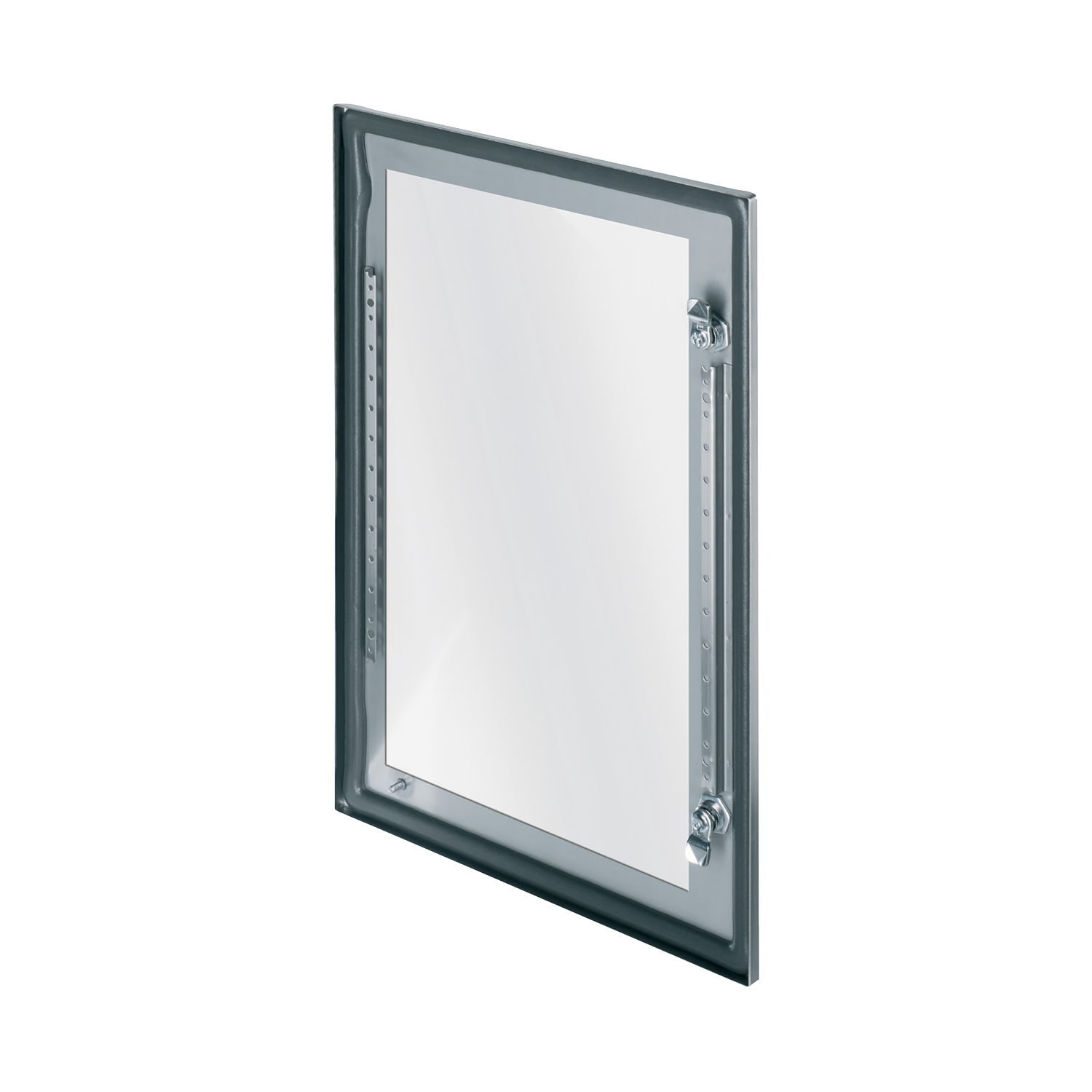 Porta trasparente per Spacial S3X Il prodotto deve essere montato sulla parte anteriore dell'armadio La larghezza è di 500 mm L'altezza è 700 mm La porta è in acciaio inox 304L e ha un grado di protezione IP66 Cerniere sinistra o destra (angolo di apertura 120°) La porta ha 2 serrature con doppia barra da 3 mm