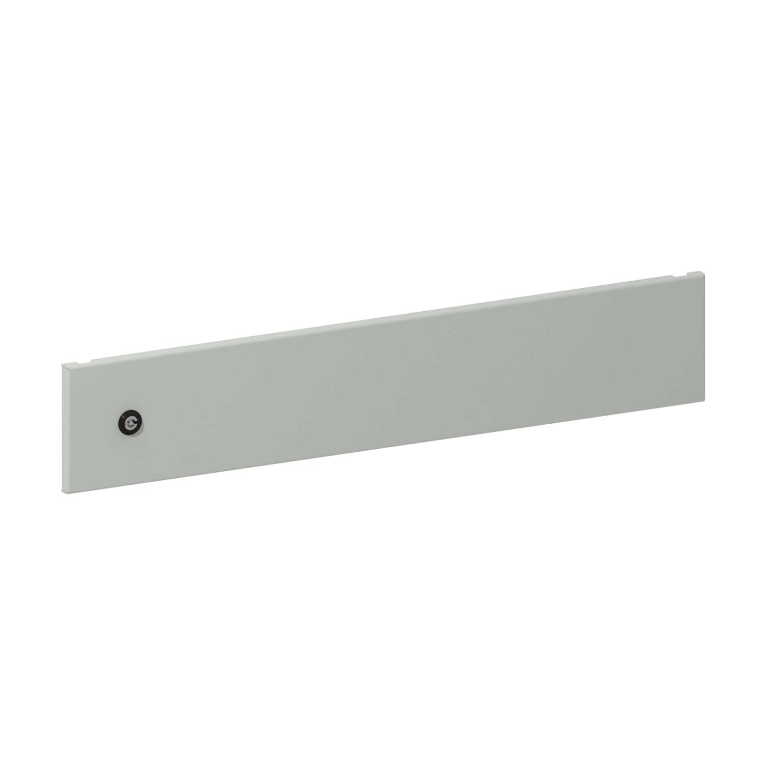 Porta piena esterna per Spacial SFM Il prodotto deve essere montato sulla parte anteriore dell'armadio La larghezza nominale è 800 mm L'altezza nominale è 150 mm Altezza M3 in base alla modularità (1M = 50 mm) La porta è in acciaio (RAL 7035) e ha un grado di protezione IP54 Cerniere sinistra o destra (angolo di apertura 120°) Lo sportello ha 1 serrature con doppia barra da 5 mm