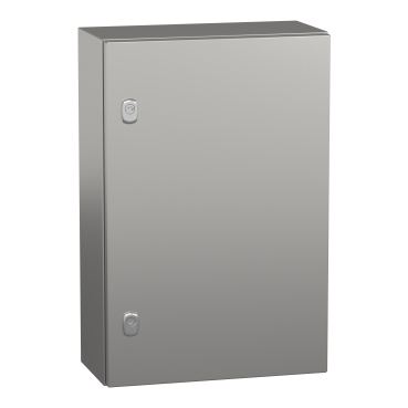 Armadio da parete PanelSeT S3X in acciaio inox 304L per applicazioni multifunzione e resistenza alla corrosione È progettato per l'uso in ambienti gravosi, può sopportare l'impatto elevato grazie alla sua resistenza agli urti IK10 (IEC62262) e ha un'elevata resistenza alla polvere e all'acqua con un grado di protezione IP66 (IEC60529) L'armadio ha un'altezza, una larghezza e una profondità nominali di 600 mm, 400 mm e 200 mm rispettivamente L'involucro è realizzato con finitura di superficie spazzolata Scotch-Brite® L'armadio è costituito da un corpo, uno sportello piano e due serrature La porta può essere aperta fino a 120°, facilitando l'accesso all'apparecchiatura all'interno È possibile cambiare il lato di apertura dello sportello (reversibile) Lo sportello è dotato di una serratura a due punti di chiusura con inserto doppia barra da 3 mm Lo sportello può essere rimosso per finalità di manutenzione Il peso netto dell'involucro è di 9,446 kg È certificato UL508 tipo A e CAN/CSA 22