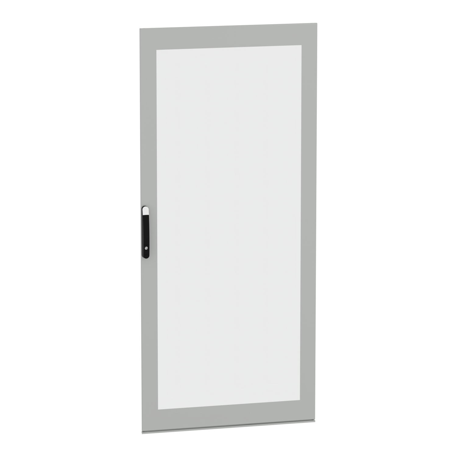 Questa porta trasparente è progettata appositamente per assemblare un armadio elettrico modulare in acciaio decarbonizzato con montaggio a pavimento PanelSeT SFN per varie applicazioni. È compatibile con l'armadio in acciaio Spacial SM. La porta è in lamiera d'acciaio e vetro Securit, mentre la maniglia è in poliammide 6 con il 30% di fibra di vetro. La finitura in polvere epossi-poliestere fornisce un aspetto uniforme. È di colore grigio (RAL 7035) con una maniglia nera (RAL 9005). Ha un'apertura fino a120 gradi ed è reversibile, il che significa che può essere aperto da entrambi i lati. Lo sportello è dotato di una serratura a quattro punti con una maniglia dotata di un inserto a doppia barra da 5 mm per garantire la sicurezza.