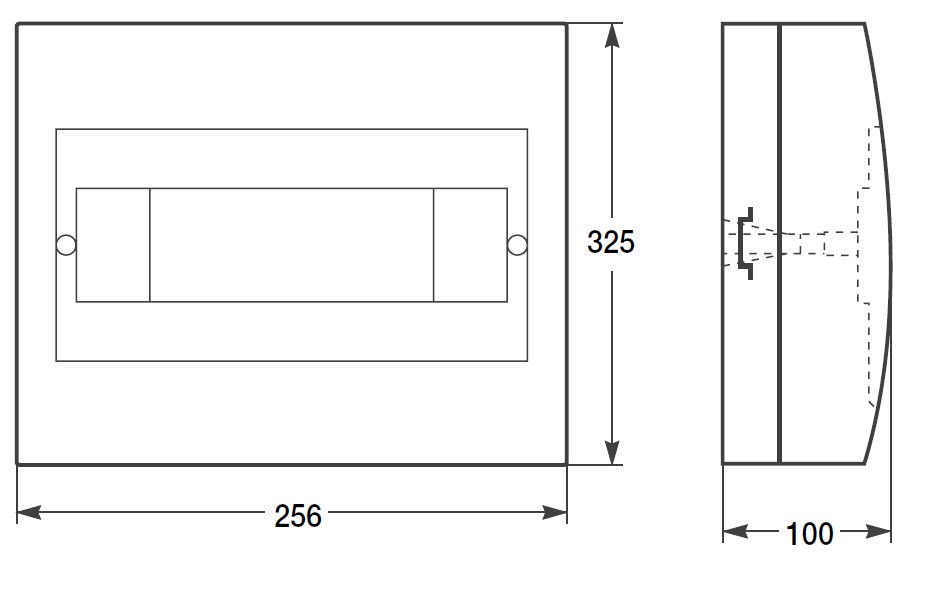 Centralini da parete IP40 per apparecchi modulari. CEI 23-48, CEI 23-49. Centralini senza porta bianco RAL 9003. Dimensioni: 325 x 256 x 100 mm. Potenza dissipabile : 32 W. Moduli da 18 mm: 24 (2x12).