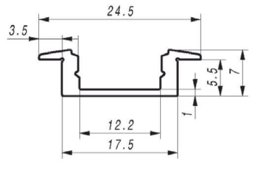 SIRIOprofile I7A / Profilo in alluminio + copertura acidata - lunghezza 2m. Profilo da incasso con altezza ridotta (solo 7 mm) e diffusore in policarbonato (rimovibile). La copertura è resistente ai raggi UV.