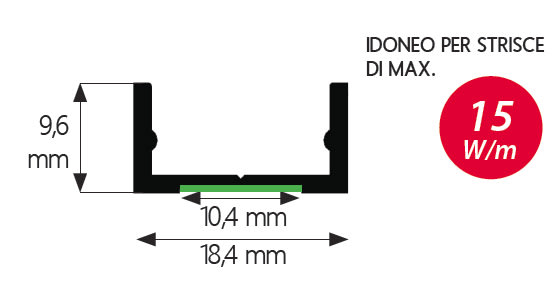 SIRIOprofile basic E7 - 2 m. Dimensioni: 18,4x9,6x2000mm. Bianco.