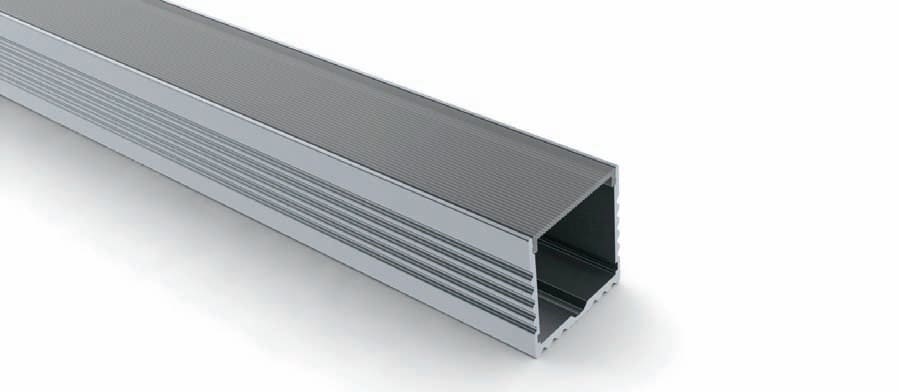 Profilo in alluminio anodizzato utilizzabile come corpo illuminante indipendente per l’illuminazione di uffici, librerie, showroom... Data la larghezza del profilo è possibile installare 2 strip LED anche di alta potenza (fino a 30W/m). Il profilo, dotato di vari tipi di copertura, può essere messo in sospensione tramite cavi in acciaio inossidabile oppure fissato direttamente al soffitto. Utilizzabile con Strip LED di alta potenza (fino a 30W/m).