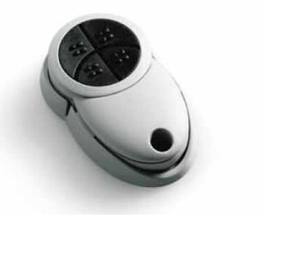 Trasmettitore wireless portatile con clip per il controllo di 2 carichi o di 1 carico con tasti separati.