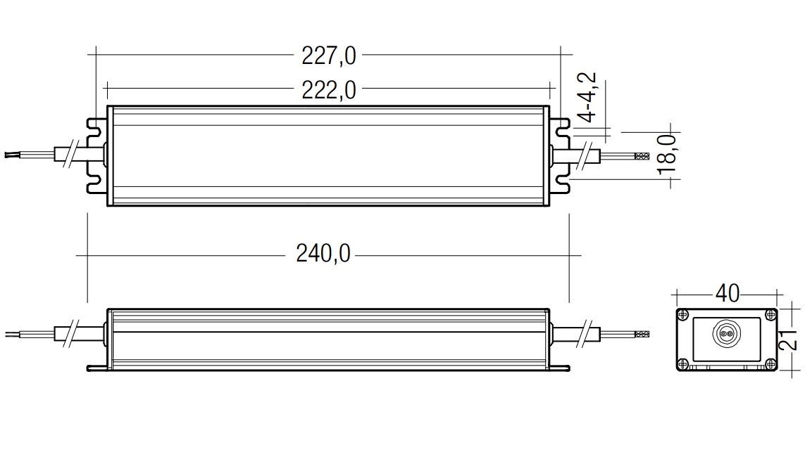 TALEXdriver LCU 60W 12/24V IP67 EXC . LED Driver a tensione costante. Tensione di alimentazione universale. Tensione in uscita costante. Collegamento: cavo con puntalini (lunghezza circa 500 mm). Identificatori di polarità sul secondario: + rosso / - nero. Copertura metallico, resinato. Durata vita nominale di max. 50.000 h (con ta 50 °C con un tasso di mal funzionamento ≤ 0,2 % per 1.000 h). 5 anni di garanzia.
