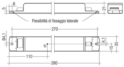 LC 75W 100-400mA flexC lp EXC. ED Driver a corrente costante per incasso in apparecchi d'illuminazione. Dimmerabile con gateway ready2mains. Dimming 8 – 100 % (in funzione del carico. Per dettagli vedi capitolo 4.7 sul dimming nella scheda tecnica.). Corrente d'uscita programmabile da 100 a 400 mA con programmer ready2mains oppure I-select 2 Plugs. Potenza d'uscita max. 75 W. Efficienza fino al 94 %. Per apparecchi illuminanti in classe d'isolamento I e II. Durata vita nominale di max. 100.000 h. 5 anni di garanzia. Caratteristiche armatura: Copertura metallica bianca nel formato low profile (altezza 21 mm). Tipo di protezione IP20. Interfacce: ready2mains (configurazione e dimming via rete). Morsetti: innesti 0°. Funzioni: Corrente d'uscita regolabile apassi di 1 mA (ready2mains, I-select 2). Dimmerabile con interfaccia ready2mains. Funzioni protettive: sovratemperatura, cortocircuito, sovraccarico, funzionamento a vuoto, tensione d'ingresso consentita). Idoneo per unità illuminazione d'emergenza conf.EN 50172. Vantaggi: Finestra operativa studiata per la massima compatibilità. Consistente risparmio energetico grazie alla grande efficienza e al dimming via ready2mains. Configurazione flessibile via ready2mains e I-select 2. Durata fino a 100.000 h e 5anni di garanzia. Applicazioni tipiche: Per illuminazione lineare ed estensiva in uffici.
