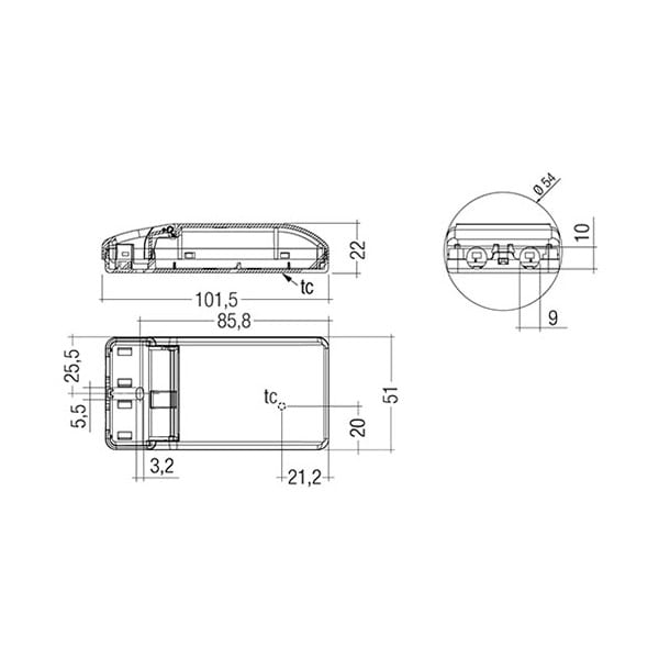 LC 20W 700mA fixC SR SNC - Driver LED separato, con pressacavi. Versione ultrapiatta per spazi d'incasso ridotti (fori soffitto piccoli e spessori ridotti del controsoffitto) . Potenza d'uscita max. 20 W. Corrente d'uscita 700 mA. Efficienza fino al 87,5 %. Per apparecchi illuminanti contrassegnati da M e MM in base alla EN 60598, VDE 0710 e VDE 0711. Durata vita nominale di max. 50.000 h. Protezione della temperatura in base alla EN 61347-2-13 C5e. 5 anni di garanzia . Copertura policarbonato bianco. Tipo di protezione IP20. Tensione in uscita 40 V. Potenza d'uscita 13 – 20 W. Dimensioni L x l x H: 101,5 x 51 x 22 mm.