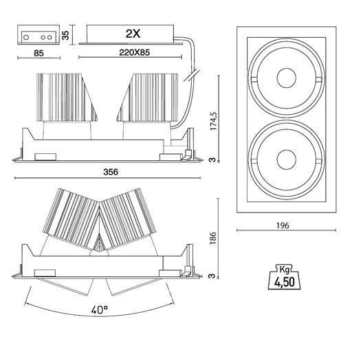 SIDE SPA - SDE70601-LBC-60 MATRIX POWER 2 LED 179X139MM 52W 6971LM